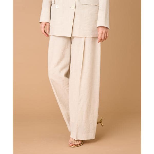 ■デザインフロントに施したタックと長めの着丈、ワイドシルエットで存在感たっぷりの一着。ストレッチ性のある素材で着やすさも抜群。すっきりとしたハイウエストのデザインもポイントで、トップスをタックインすれば女性らしいメリハリのある着こなしが決まります。サイドの縫い目を無くし女性らしいシルエットに仕上げました。■素材ウールとナイロンフィラメントをサイロフィルで紡績した糸とリネン100%糸を交織しています。オリジナル糸のほど良いドレープ性、ドライタッチな風合いとリネンのハリがあり、滑らかで肌触りの良い、それぞれの特徴を活かしたファブリックにしています。リネン糸を色のミックス感が出るよう、メランジの糸を使い見た目も爽やかにしています。・裏地あり・ポケットあり同素材のジャケット品番:8060141901同素材のジレ品番:8060141902■下げ札サイズ表記1=(S/7号)2=(M/9号)3=(L/11号)■サンプル撮影商品画像の商品はサンプルです。実際の商品とはサイズや色味、素材、デザイン等の仕様が若干変更になる場合がございます。■カラーについては、可能な限り実際の商品に近いカラーで撮影をおこなっておりますが、照明の関係により実際の製品とは色味が違って見える場合があります。またパソコン・スマートフォンなどの環境により、若干製品と画像のカラーが異なる場合もございます。現物と画像のカラー差異については返品理由となりませんので、予めご了承ください。■サイズ表記はあくまで目安となります。