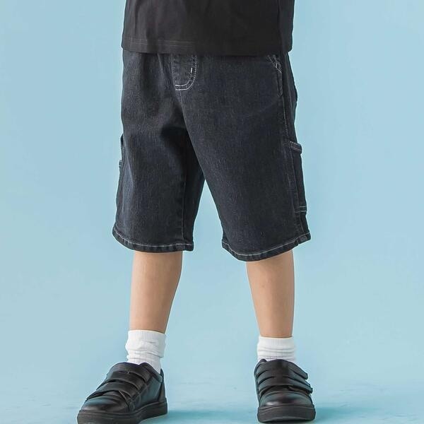 ほどよい長さのひざ下丈が、アクティブな男の子にちょうどいいデニムショートパンツ。