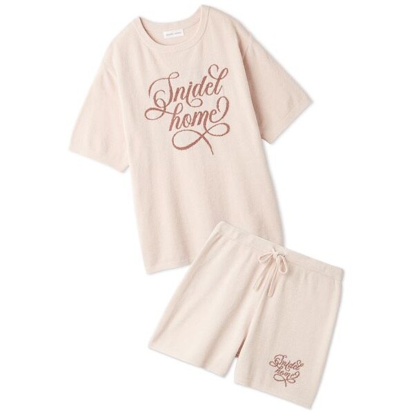 春ののんびりとした休日に似合いそうな、筆記体ロゴジャガード入りのニットセットアップです。