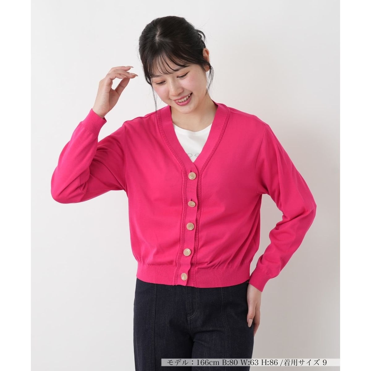 コットンにアセテートをブレンドした、さらりと爽やかな肌触りが心地よいショートカーディガン。カジュアルすぎない上品な風合いに仕上げました。トレンド感のあるショート丈は、ボリュームのあるボトムスやワンピースともバランスが取りやすく、スタイルアップを叶えてくれます。フロントは存在感のあるボタンがクラシカルなアクセントをプラス。初夏の冷房対策や日除けとして、羽織りにもプルオーバー風の着こなしにも重宝する一枚です。