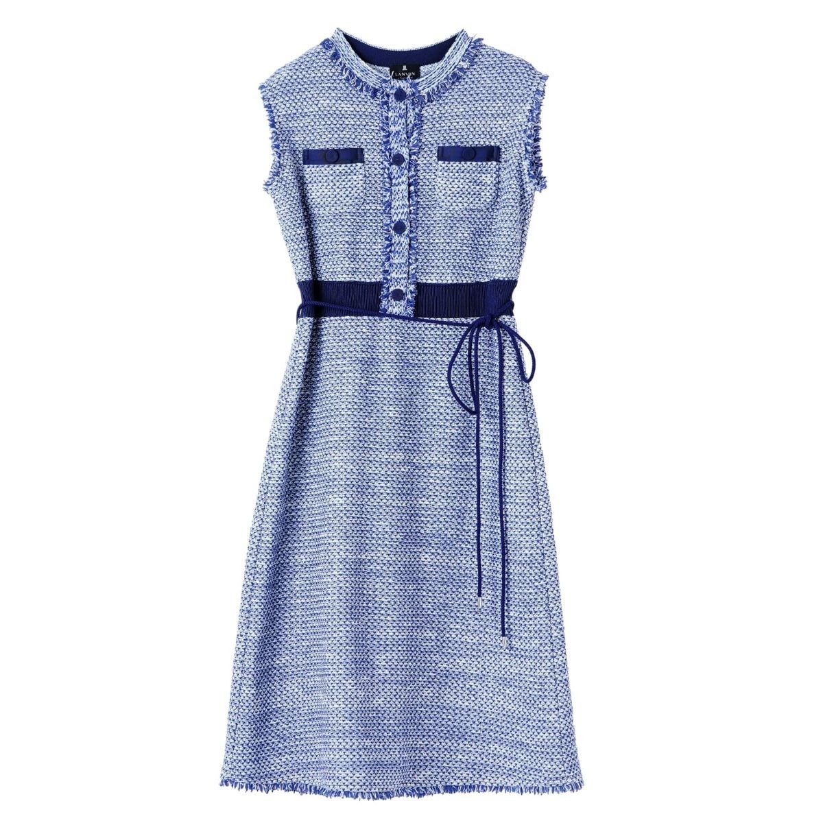 4種類の糸を巧みに掛け合わせたファンシーな編地で仕立てたワンピース。深みのある表情と柔らかな風合いが魅力です。随所にフリンジ加工を施し、手仕事の温もりを感じさせながら統一感のあるエレガントな佇まいを演出します。