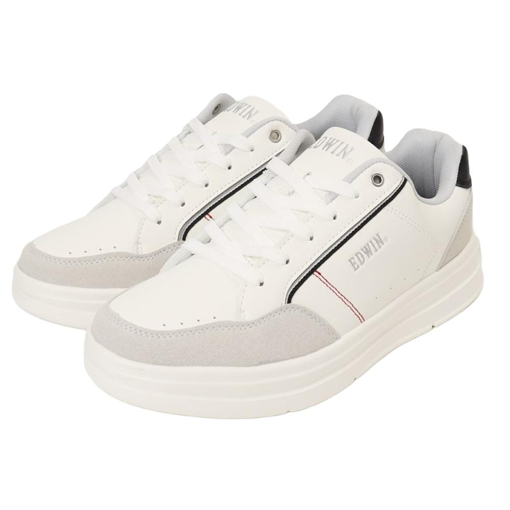 【軽やかEDWINの新定番】ふわっと軽い履き心地とスタイリッシュなデザインで毎日に寄り添う一足。【軽さが生む快適感】毎日の通勤やお出かけにも疲れを感じさせない、EDWINの軽量スニーカーがついに登場◎【クッションの包容力】インソールや履き口にクッションを内蔵し、足裏への衝撃を和らげる柔らかな履き心地〇【清潔を保つ安心感】取り外し可能なインソールはそのまま洗えて、いつでも清潔な状態をキープできる嬉しい仕様◎【シューレースで自在調整】クラシックなシューレーススタイルで足の甲のフィット感を思いどおりに調節できる使いやすさ!【モノトーンの存在感】トレンド感漂うモノトーンカラーが、どんなスタイリングにも自然と溶け込むおしゃれな一足。【さりげないデザイン力】エンボス加工やロゴ入りカラーテープがさりげないアクセントを添える、こだわりのディテール♪