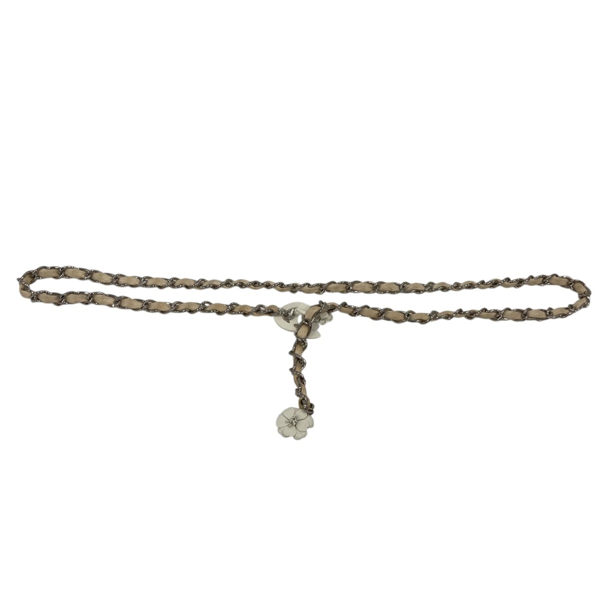 シルバー チェーンベルト パール&ビジュー付き ウォレットチェーンタイプベルト