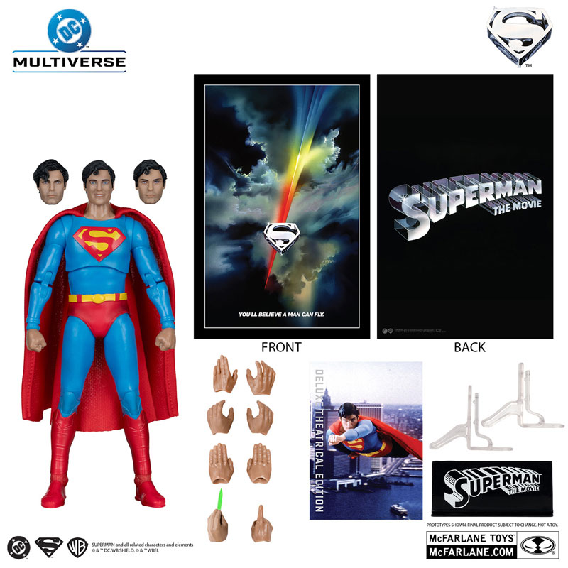 高い造形力とクオリティーに定評のあるマクファーレン・トイズがお贈りする、7インチ・アクションフィギュア「DCマルチバース」シリーズ。1978年の映画『スーパーマン』より、「デラックス・シアトリカル・エディション」スーパーマンがラインナップ!