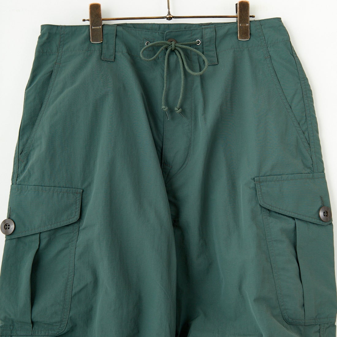 ARMY TWILL SANFORIZED[アーミーツイル サンフォライズド]のリップストップ カーゴパンツ。ヴィンテージのフィールドパンツをデザインソースに再構築したカーゴパンツです。イギリス軍のポケットディティールやアメリカ軍のシルエット感など過去の名作ヴィンテージのエッセンスをちりばめ、ミックスして作成された新しいカーゴパンツ。太めのシルエットながら、生地のドレープ感が程よく、カジュアルな印象になり過ぎずに着用いただけます。素材はナイロンで織った高密度かつ軽量なリップストップで、驚くほど軽く長時間の着用でも疲れにくいのが特徴です。