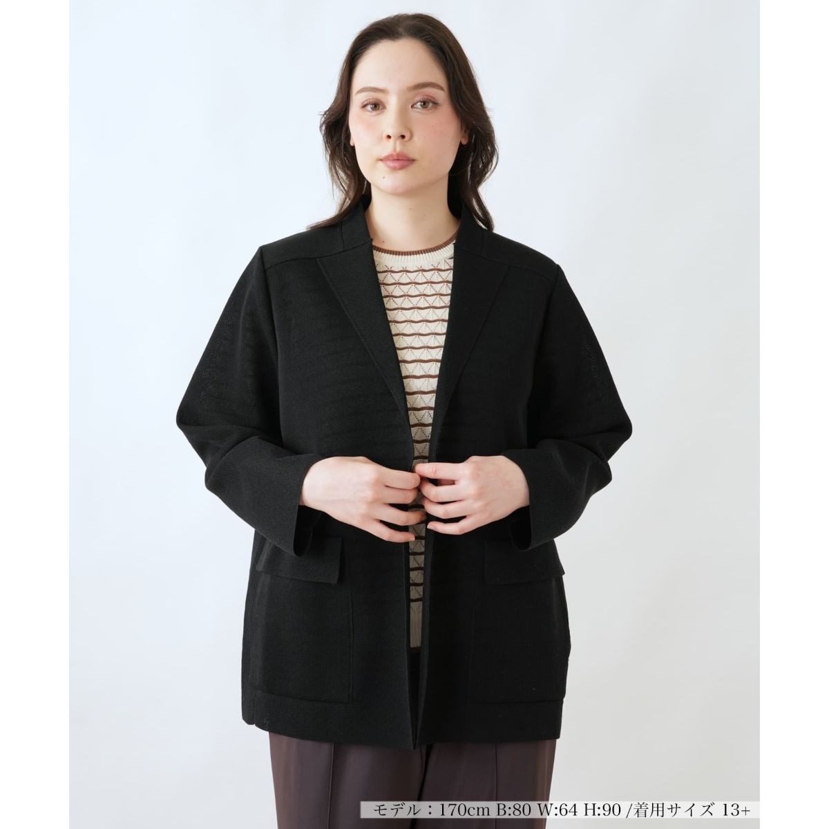 初夏からの羽織りものとして最適な、軽やかなニットジャケットでございます。さらりとした肌触りと程よいハリが、きちんとした印象を与えつつ、伸縮性に優れた素材がストレスフリーな着心地を実現いたします。カーディガン感覚でお召しいただける手軽さがありながら、ジャケットならではの上品さも兼ね備えておりますので、オフィスでの会食から休日のご友人とのランチまで、幅広いシーンで活躍する一着です。シンプルなワンピースに羽織るだけで、洗練された大人の装いが完成します。