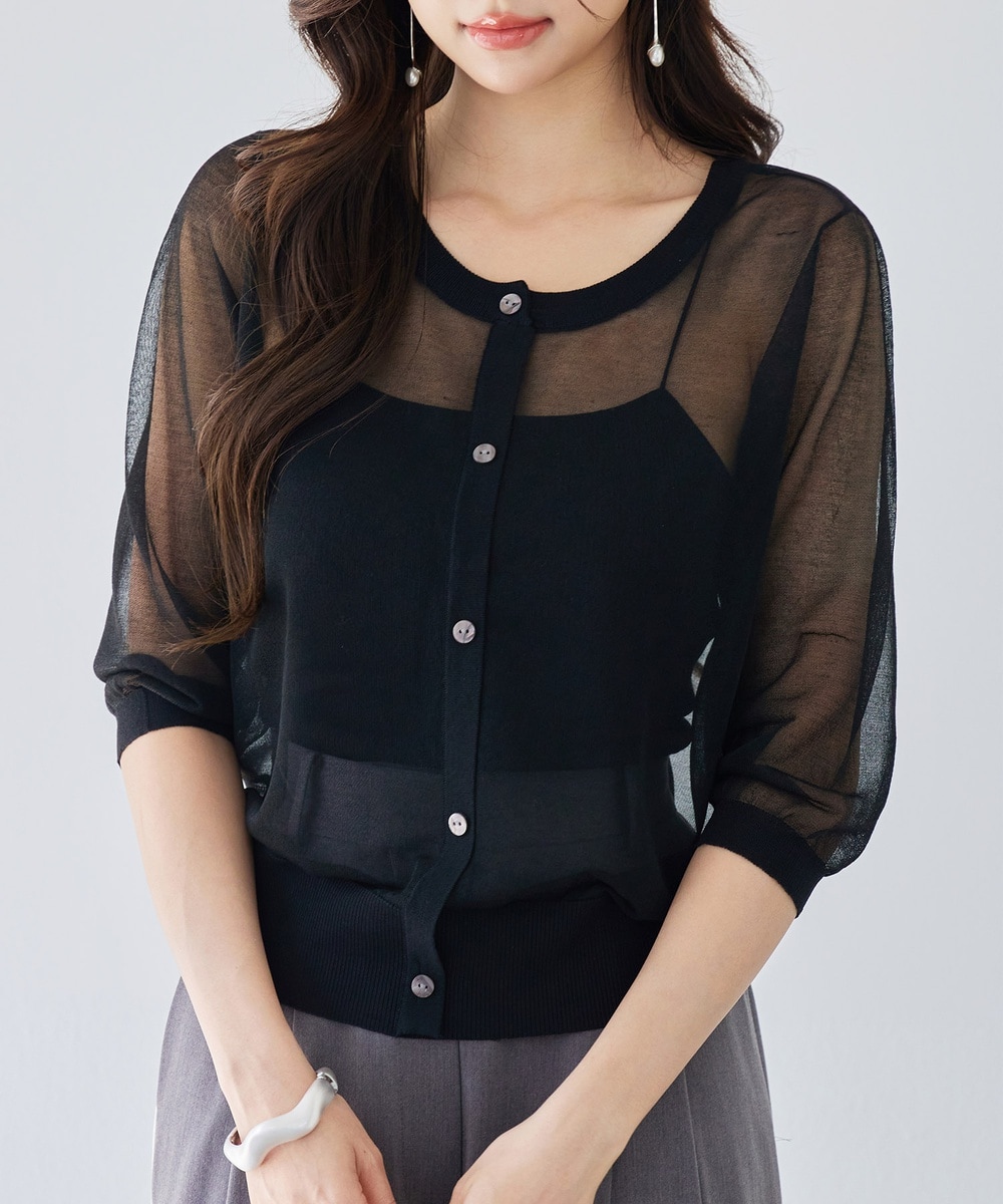 シアーな編地が涼し気な前後2wayの7分袖ニットプルオーバー。
