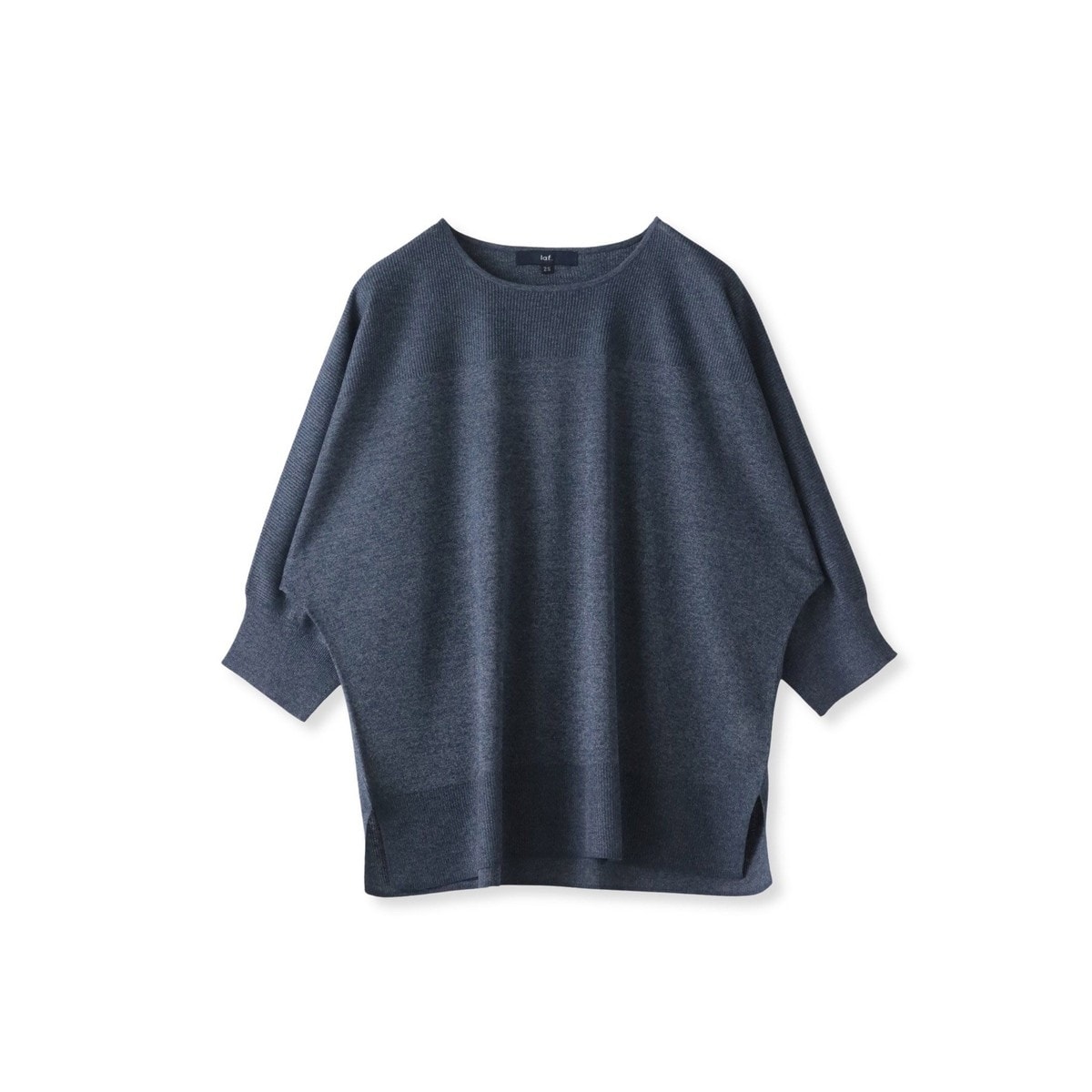 肘下丈のドルマンスリーブで肌離れの良いシルエットで春から真夏まで快適に着ていただけます。ニットならではの編地切替を胸元のアクセントにしています。