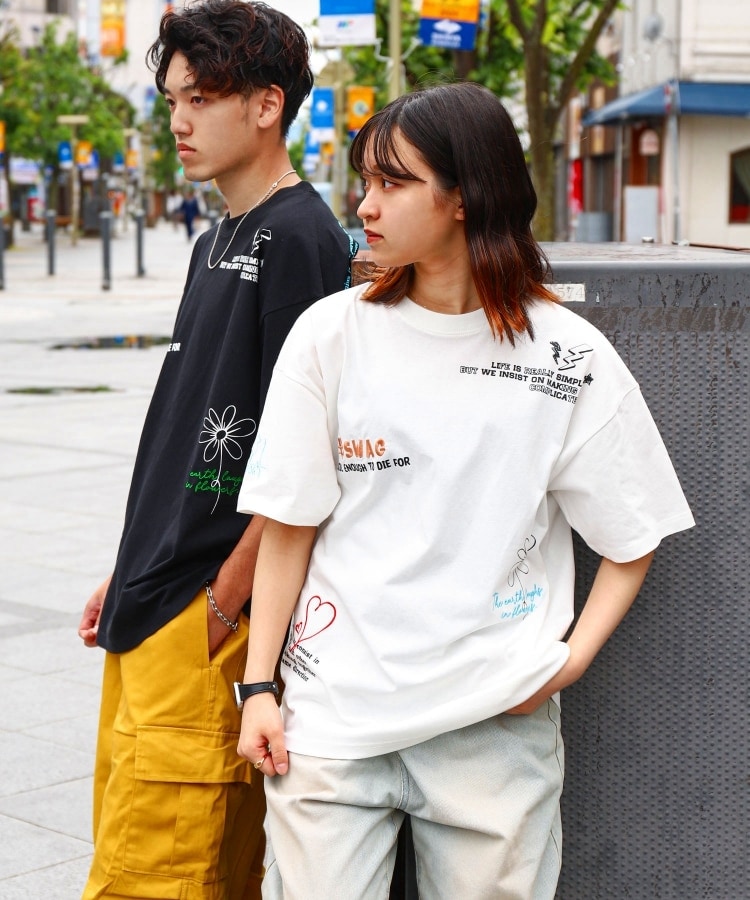 落書き刺繍が存在感を出しトレンドライクなTシャツに仕上がりました。