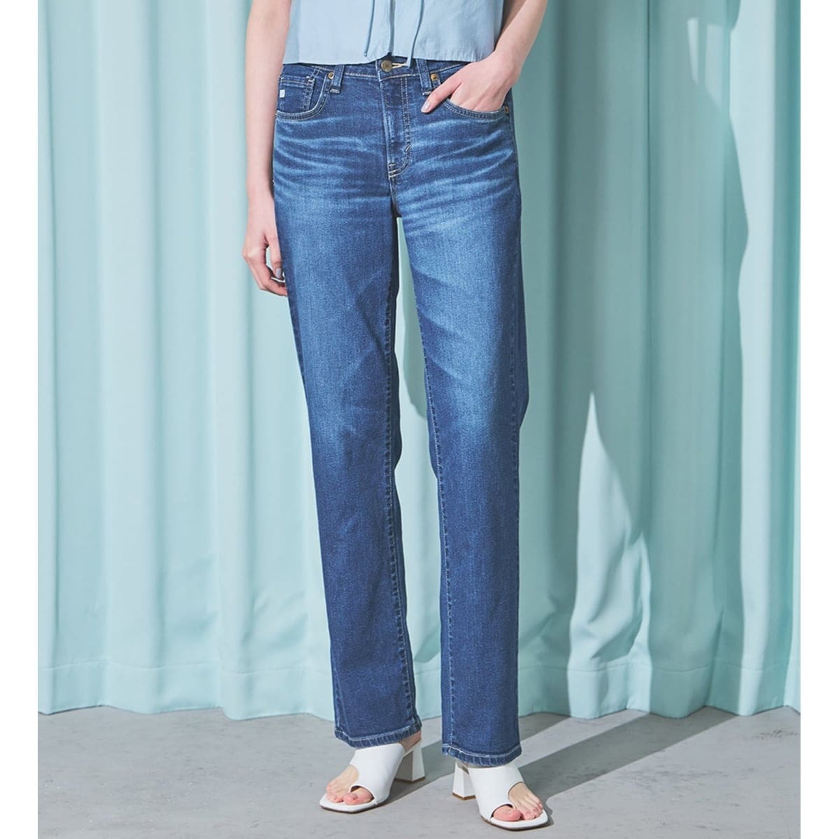 まっすぐなストレートシルエットは、カジュアルからきれいめまで、様々な着こなしにマッチする優秀アイテム。フルレングスのデザインなので、トップスは少し肌見せすることで、程よい抜け感のある旬なスタイリングがおすすめです。春先には透け感のある軽やかなトップスと、真夏にはノースリーブやキャミソールと合わせれば、全体のバランスが◎。清涼感とスタイルアップを両同時に叶える、夏のワードローブに欠かせない一本です。