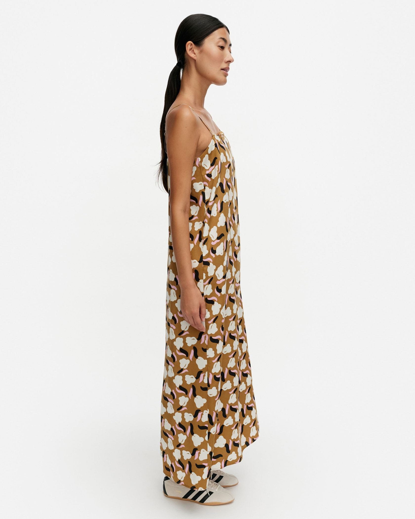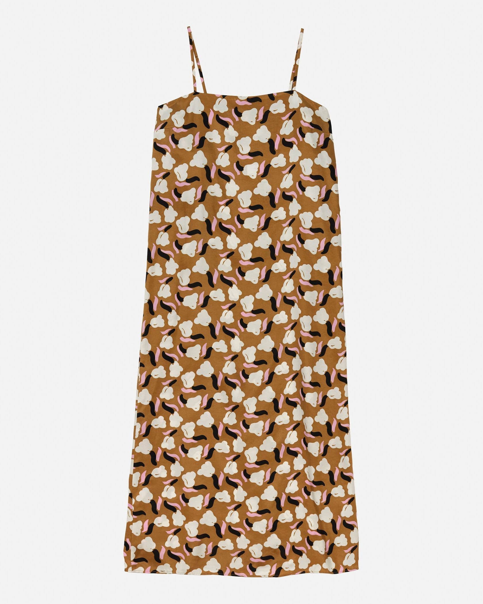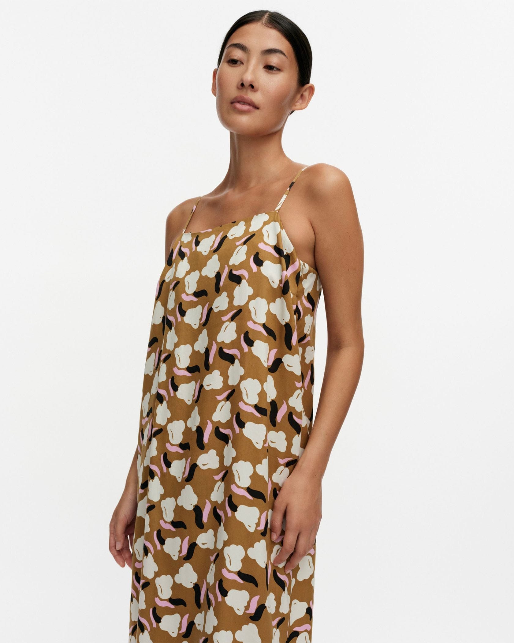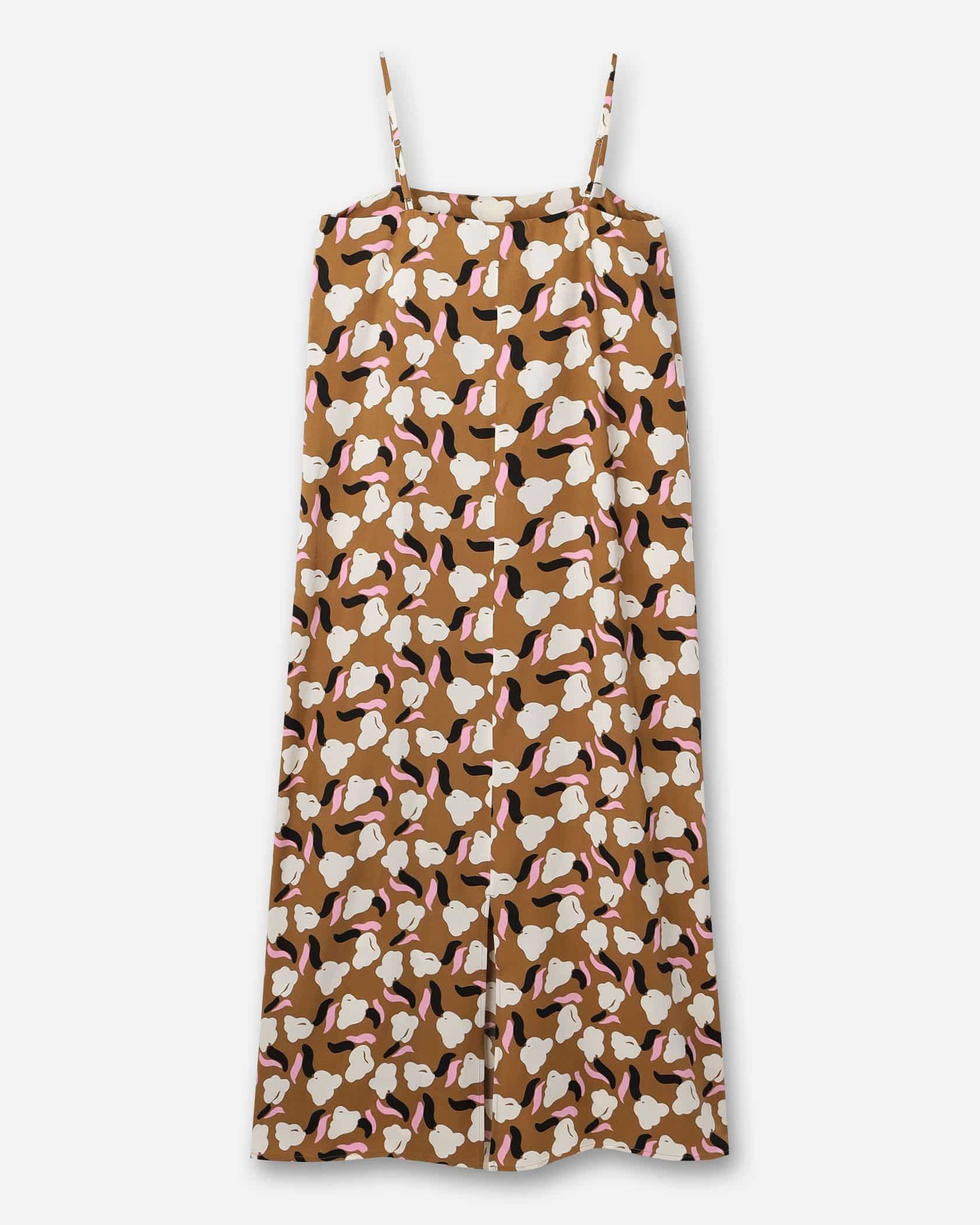 これ1枚でトータルコーデがかなうSh Pyorahdys Lemmittyワンピースです。あわせやすい落ち着いた色合いながら、遠目にも存在感を発揮します。落ち感のあるIラインシルエットとキャミソール仕様の肩ストラップでリゾート感もたっぷり、手持ちのTシャツやカットソーとの重ね着もおすすめです。