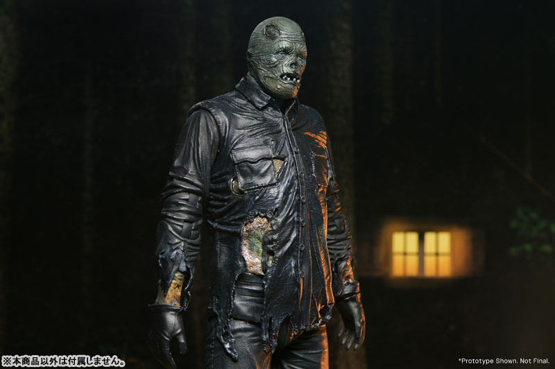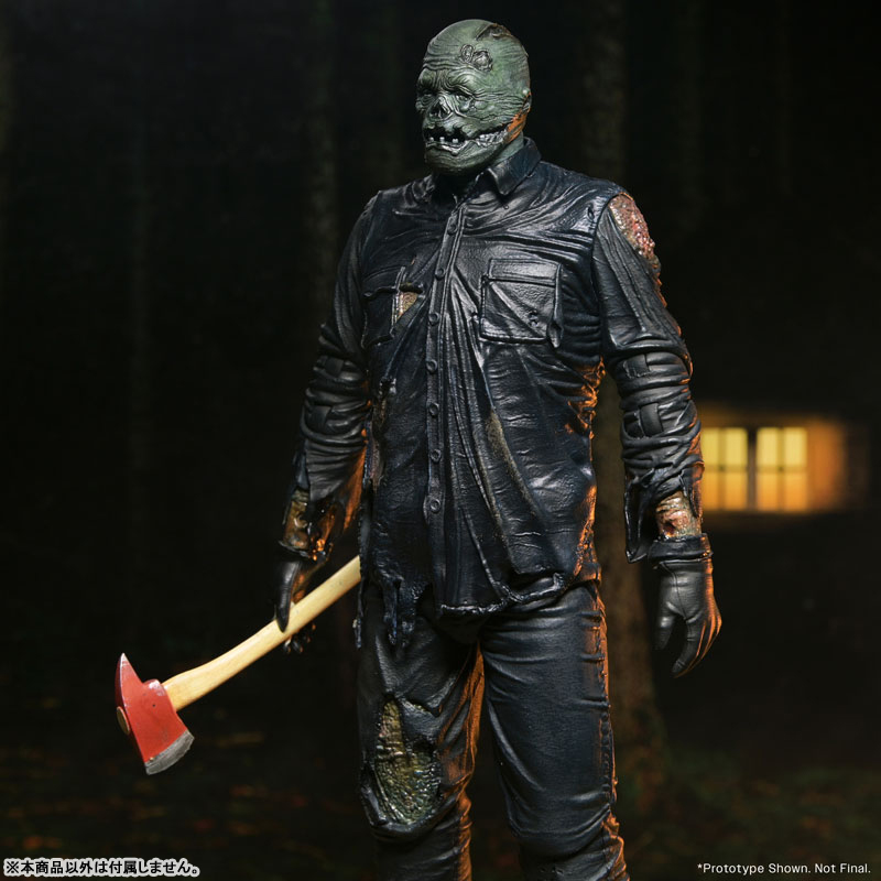 当時「クラウドファンディングで最高額を集めた映画原作のビデオゲーム」として話題を集めた、2017年リリースの『Friday the 13th The Game』。その中でプレイアブルとして使用できるジェイソン・ボーヒーズのうち、『13日の金曜日 PART8 ジェイソン N.Y.へ』版スキンをネカが7インチフィギュア化しました!傷だらけの着脱式マスクから素顔、ボロボロになった衣服、その隙間から見える腐敗度など、パート8のジェイソンの特徴をしっかり造型再現しました。シワ表現や塗装も相まって、全身濡れたような雰囲気も。アクセサリーは斧と複数の差し替えハンドパーツというシンプルな内容ながら、プレイバリューは無限大!