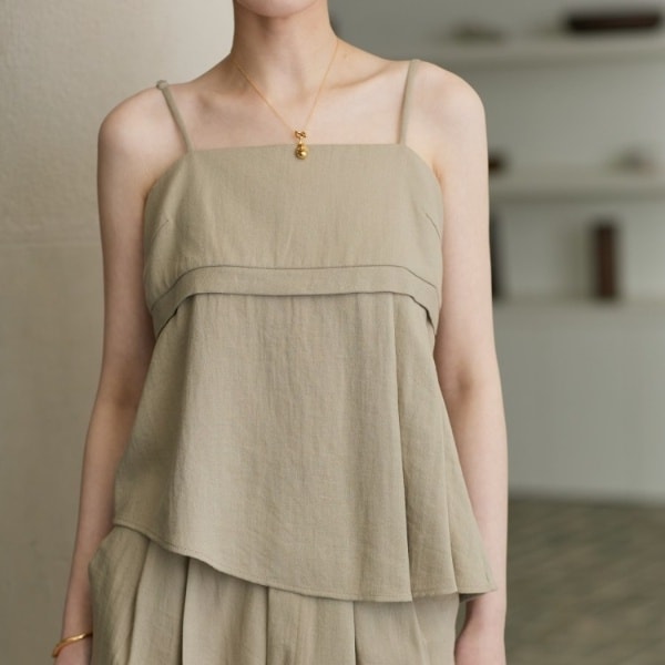 胸下で切り替えたビスチェ風のキャミソールブラウス。