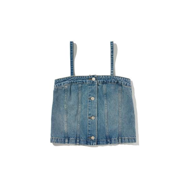 Levi'sらしくデニム生地を使用し2WAYビスチェ。ボタン留めフロントでサイドにアジャスターが付いておりサイズ調節が可能です。