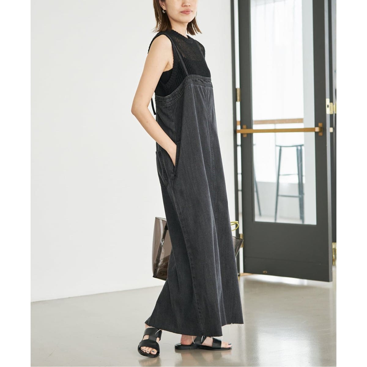 デニムナイロンロングスカート