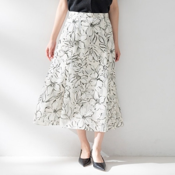 アイボリー フラワープリント フレアスカート