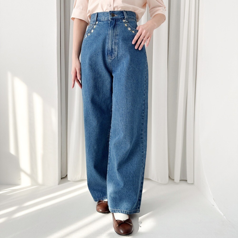 バックポケット刺繍デニムパンツ