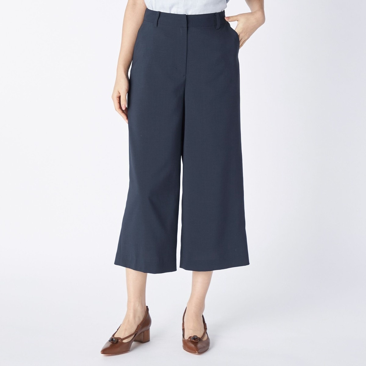 広がりがありながらも軽やかな素材使いで、春夏の装いをエレガントに映し出すワイドパンツ。カジュアルに見えない質感の素材で、大人の抜け感を演出します。ウエストの背面はゴム仕立てになっており、リラックス感とともに着こなせるのもポイント。着丈が短めなジャケットなどを合わせると、バランスのとれた綺麗めコーデが完成します。