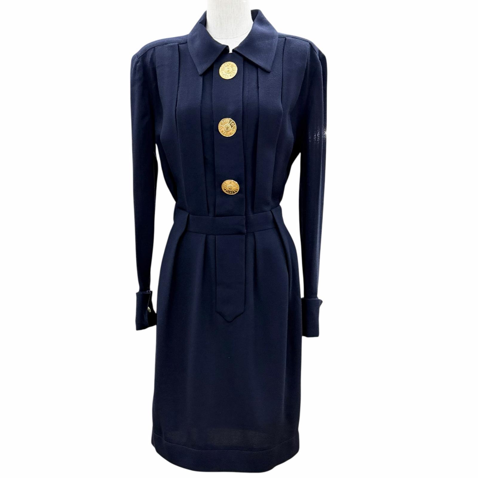 良品 CHANEL シャネル グリポア ボタン ワンピース 長袖 フレア