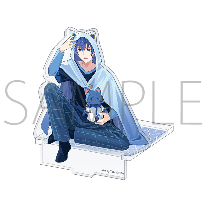 ルームウェアを着てwithCATと一緒にくつろいでいる姿の描き下ろしイラストを使用したアクリルスタンドが登場! 台座と組み合わせることで棚の縁などに座らせることも可能です。 Art by Tobi