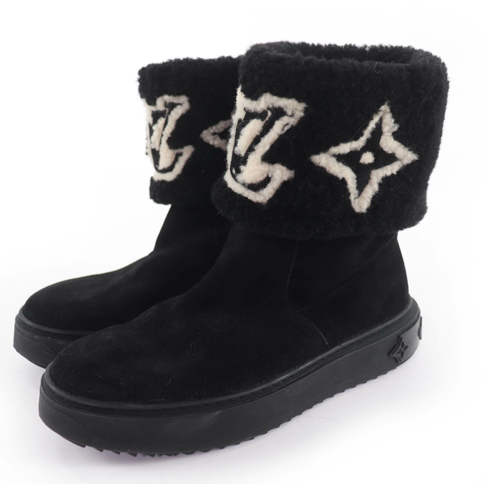 美品☆LOUIS VUITTON ルイヴィトン スプラッシュ・ライン モノグラム レインブーツ ロングブーツ ブラック 37 イタリア製 レディース【中古】