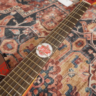 「モンスターハンター」シリーズの象徴的存在である、空の王者「火竜リオレウス」をモチーフとしており、ボディの背面と12フレットのインレイに施されているリオレウスのアイコンをはじめ、ボディ表面には特徴的な羽の模様と炎を表現した紋章、ギルドマークなど、ゲームの世界観を各所で感じることができます。