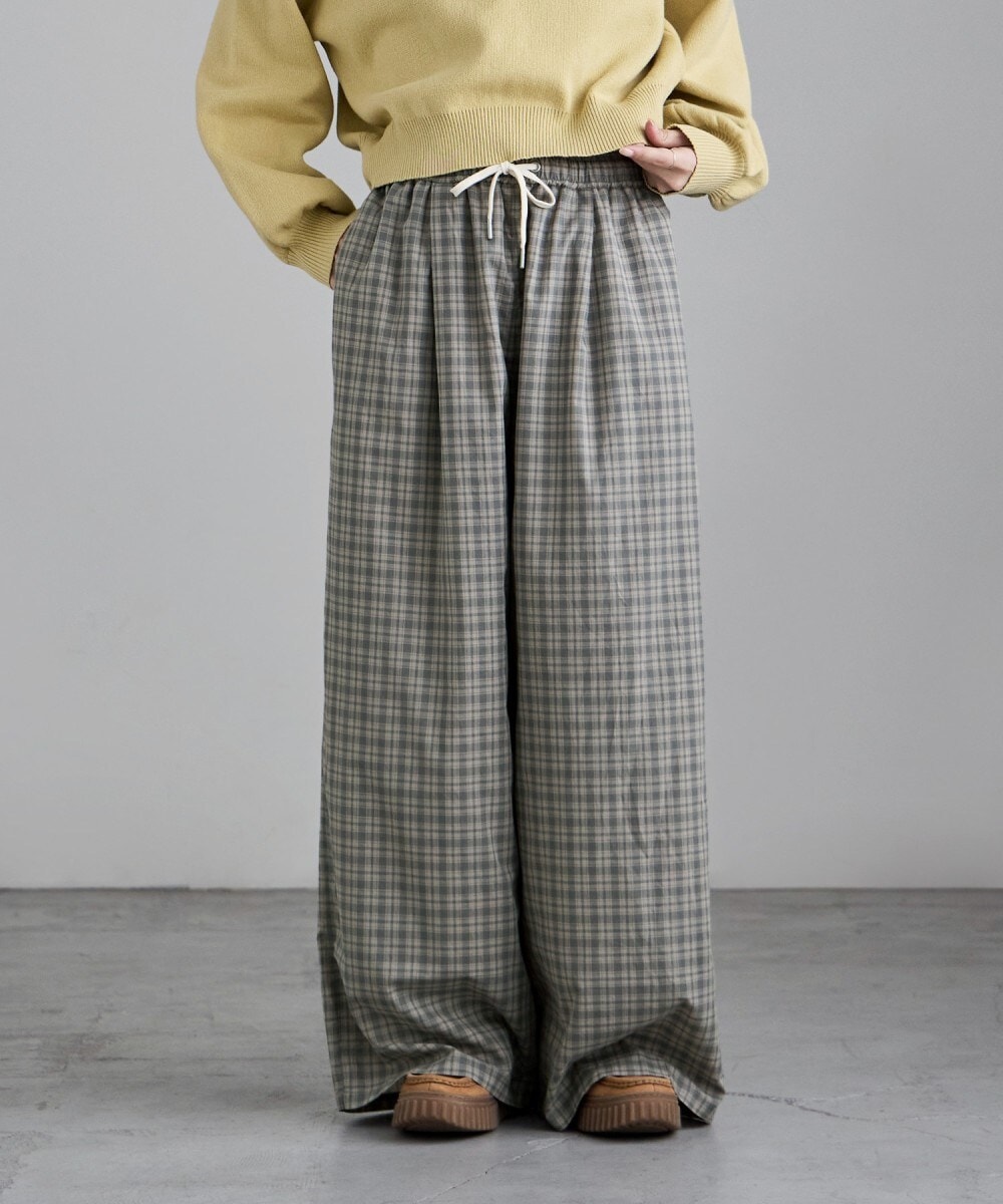 etoll. エトル 手抜きに見えずラクできる、チェック柄のコットンワイドパンツ。
