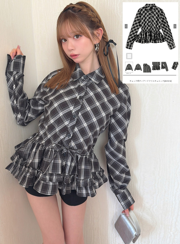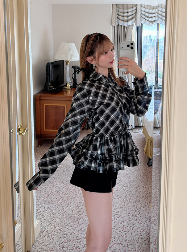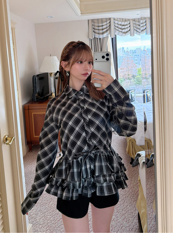 チェック柄フリルキャミティアードミニワンピース[dk1529]