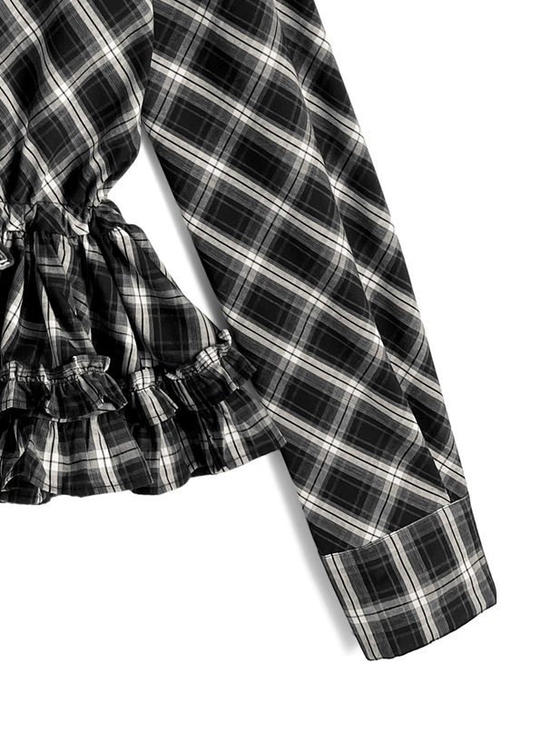 チェック柄ホルターネックペプラムトップス[dk1288]