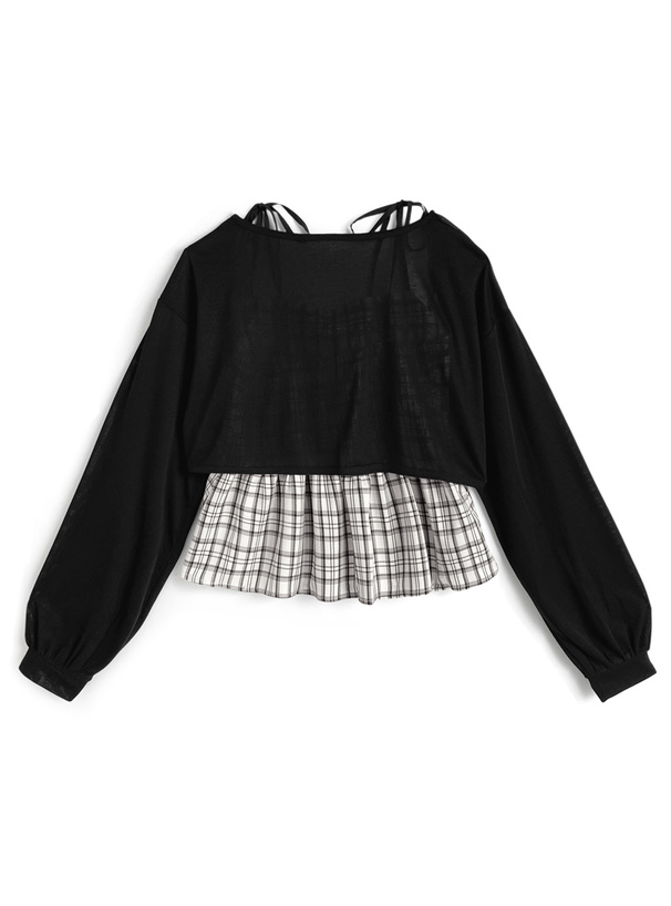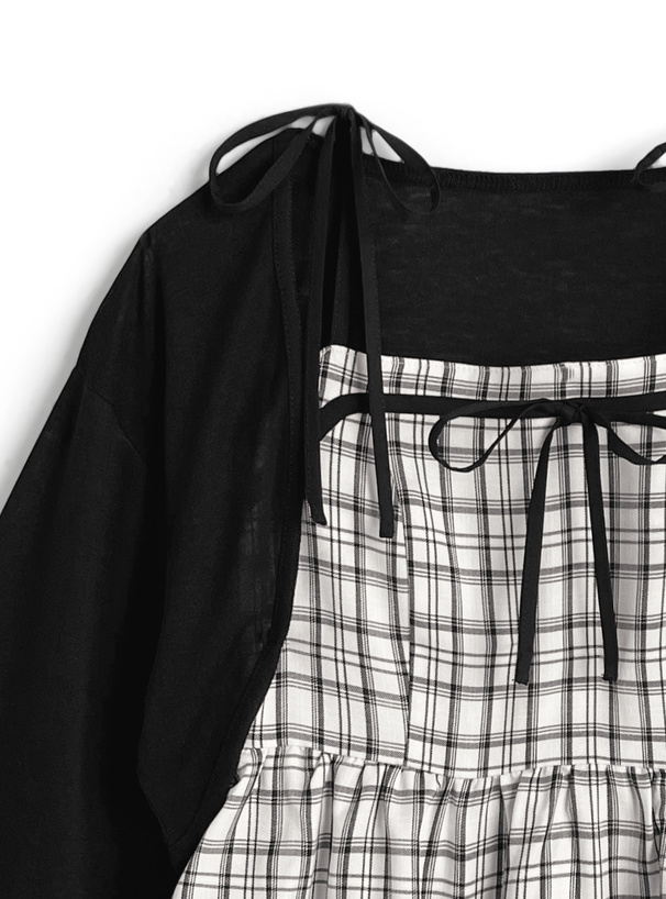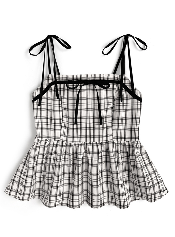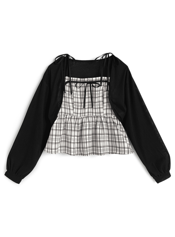 シックなチェック柄のキャミソールとボレロがセットになったアンサンブル。