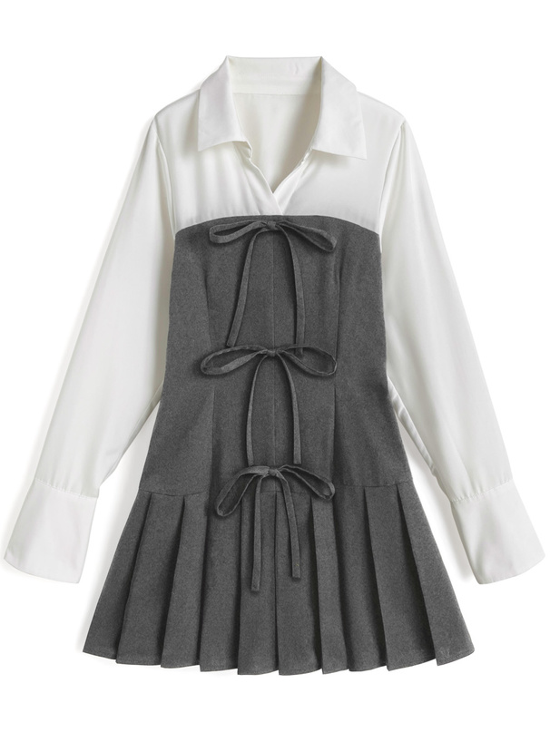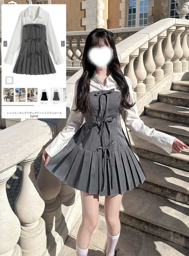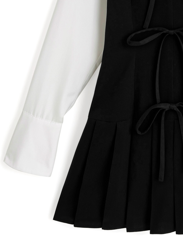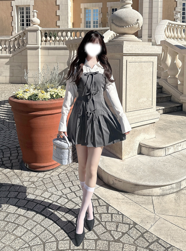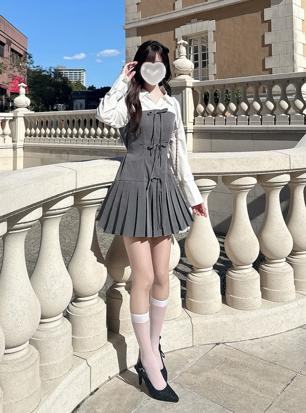 チェック柄リボンプリーツキャミソールワンピース×ボレロアンサンブル[dk1625]