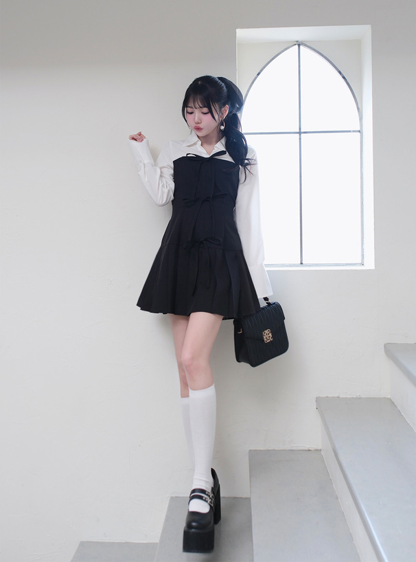 リボンオフショルダーフリルコルセットワンピース[mb1629]