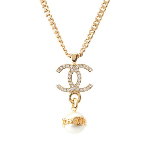シャネル B23S ココマーク ラインストーン パール リボン ネックレス アクセサリー シルバー