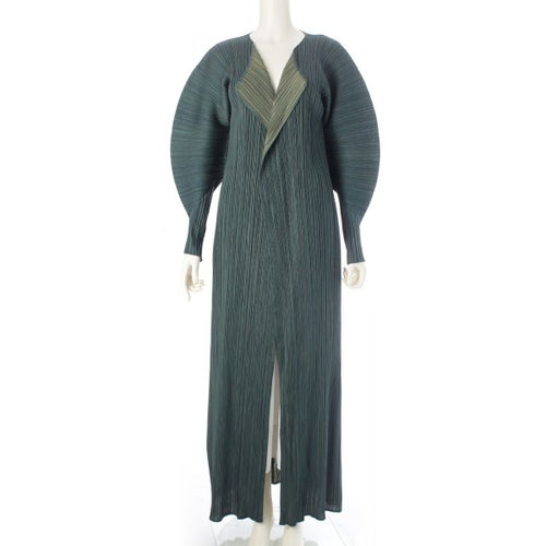【PLEATS PLEASE ISSEY MIYAKE】プリーツプリーズ イッセイミヤケ ネイビー系 ロングコート 超音波カット レディース 3【c044】