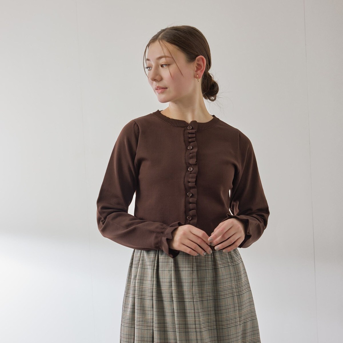 チュールレイヤードニットカーディガン≪手洗い可能≫