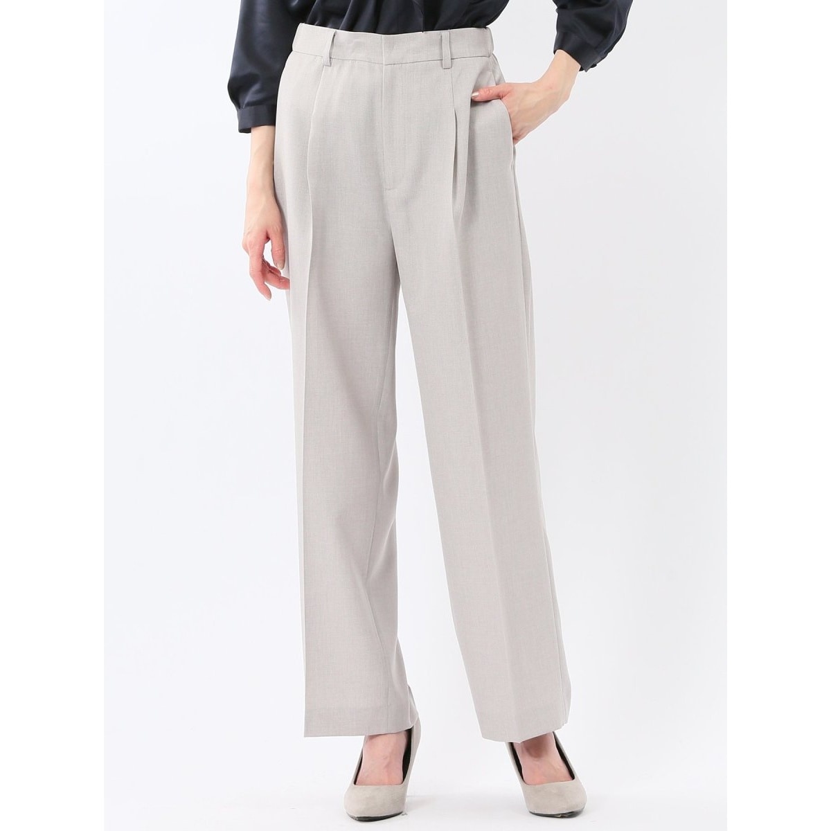 腰回りに余裕があって動きやすい、ワンタックのワイドパンツです。センタープレスでキチンと感のある印象に仕上げています。ウエストはサイドシャーリング仕様で着用ストレスを軽減。前ファスナー仕様、ホック&ボタン付き、前ポケット付き(後ポケットは飾り)です。