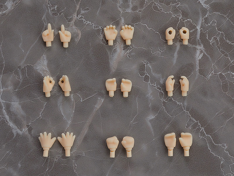 持ち手用手首や表情のついた手首が左右それぞれ6種付属するほか、手首の根本がジョイントになったタイプのものが3種つく、合計9種セットです。