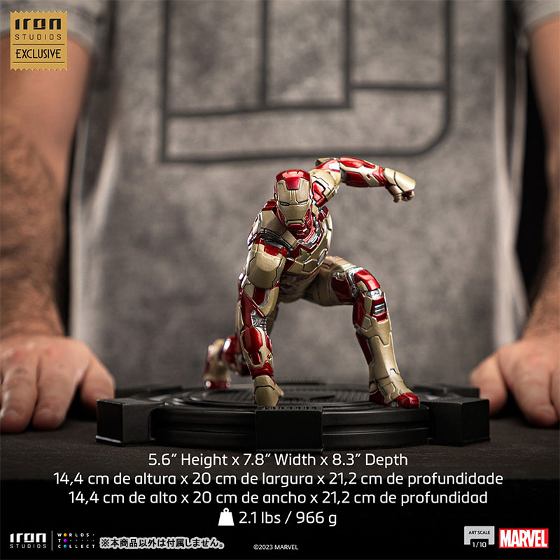 『アイアンマン3』に登場するアイアンマン・マーク42を、高さ約14cm×幅約20cm×奥行き約21cm、1/10スケールのスタチューとして立体化。