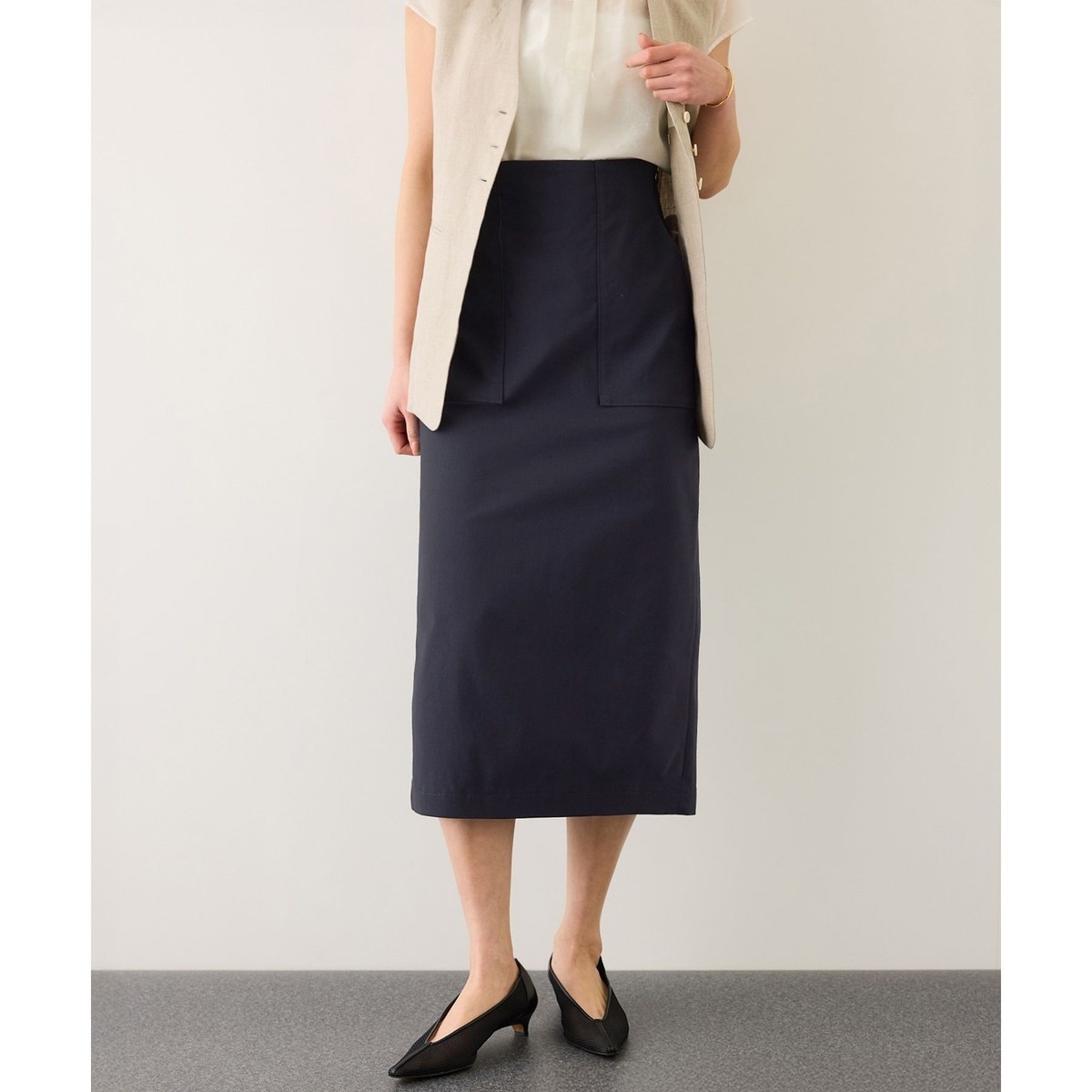 夏でも快適に着られる、オフィス向けきれいめスカートです。
