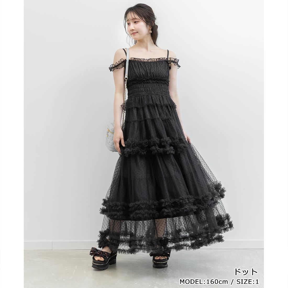 キャミワンピ チュール フリル シースルー ブラック