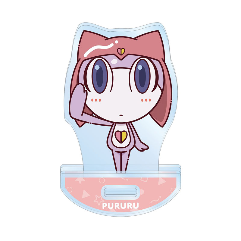 プルルがちょこんと立っているちびキャラを新たに描き起こし、ゆれるアクリルスタンドに仕上げました。