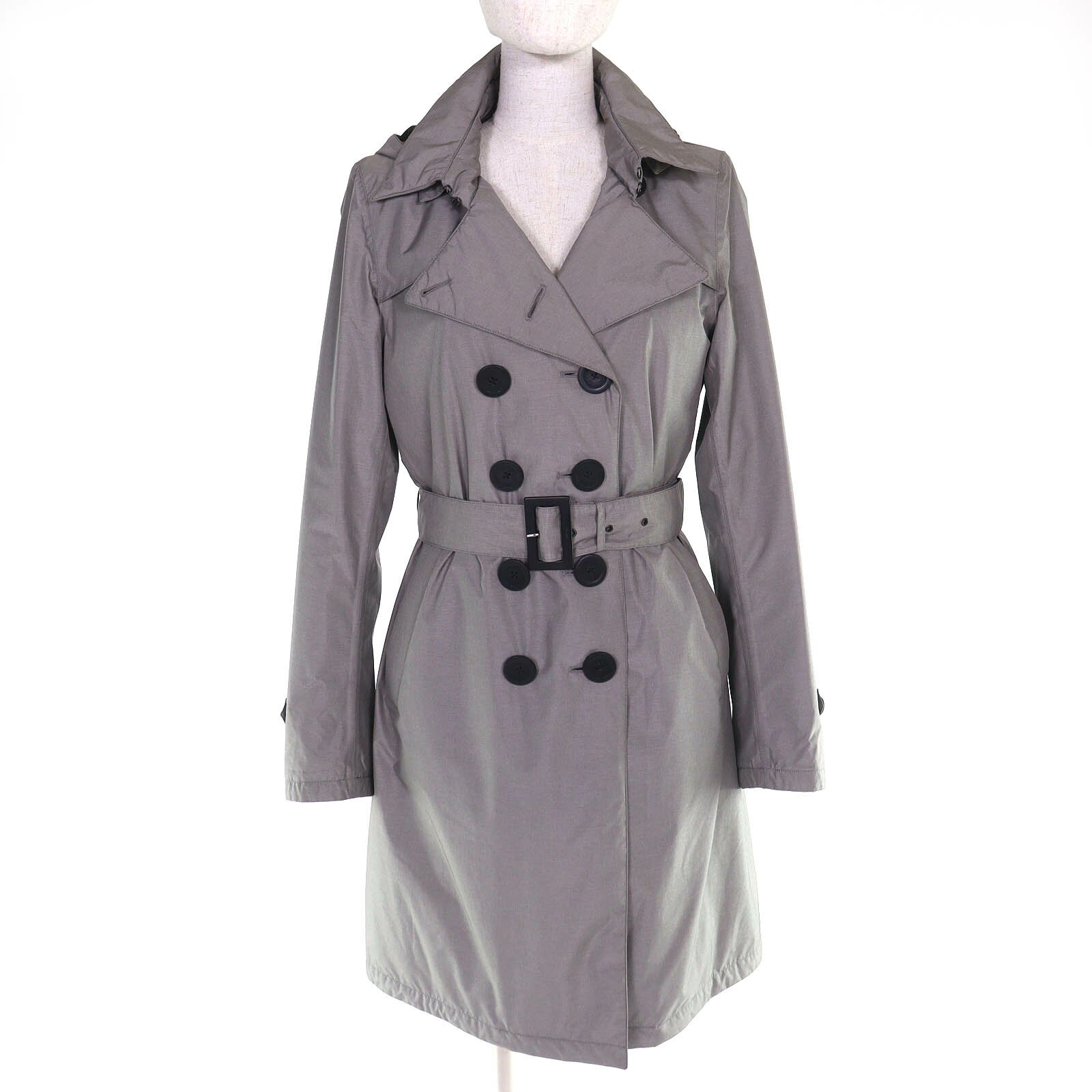極美品▲Herno ヘルノ IM0121D HLモノグラム ロゴボタン ベルト付 トレンチコート スプリングコート ブルー 42 イタリア製 正規品 レディース【中古】
