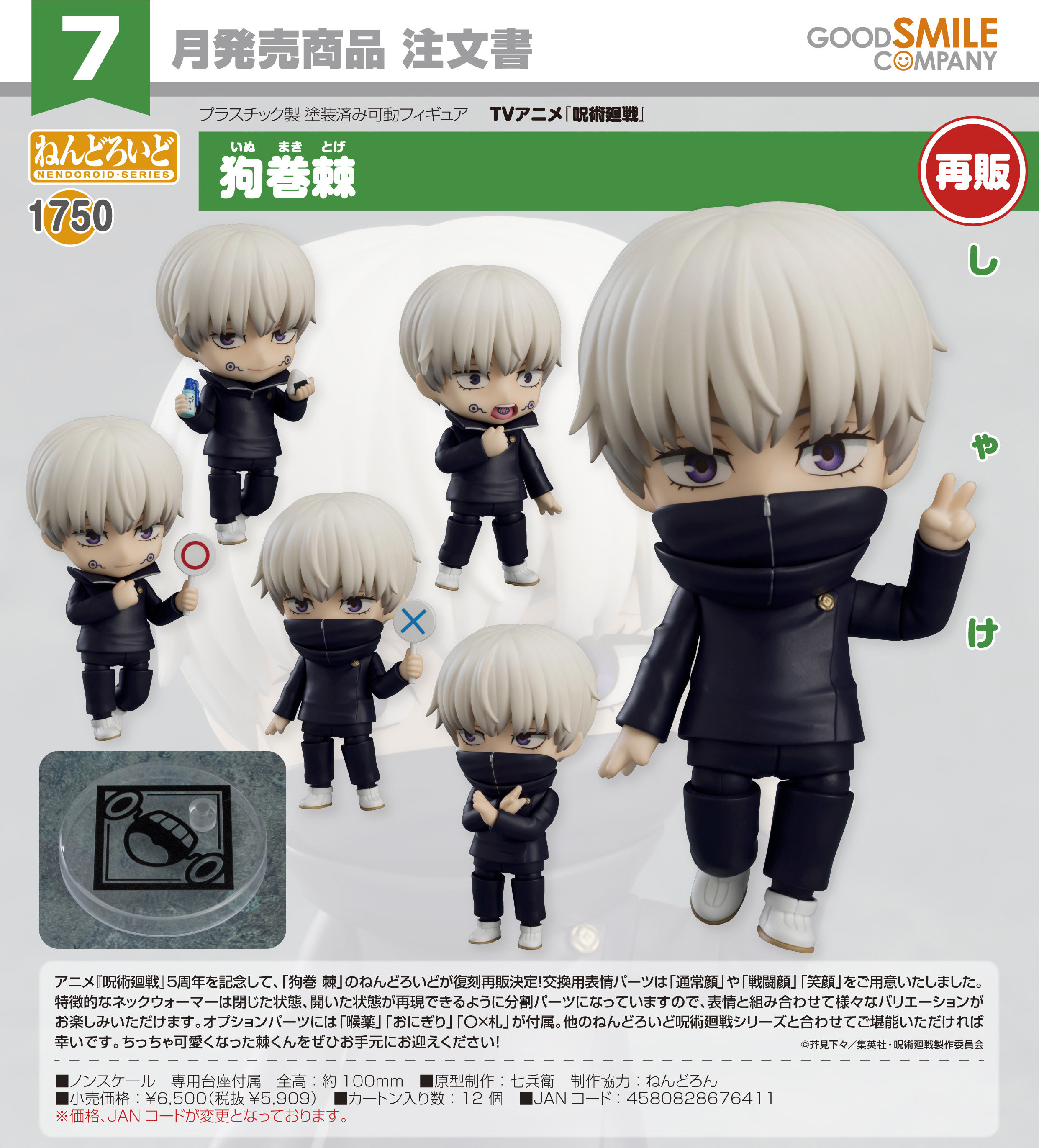 アニメ『呪術廻戦』5周年を記念して、「狗巻 棘」のねんどろいどが復刻再販決定!