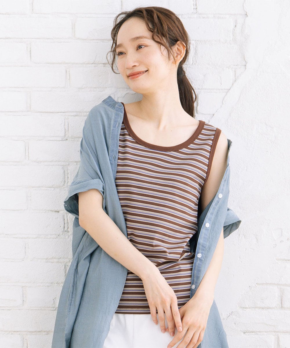ボーダー柄テレコリブタンクトップ[rut923]