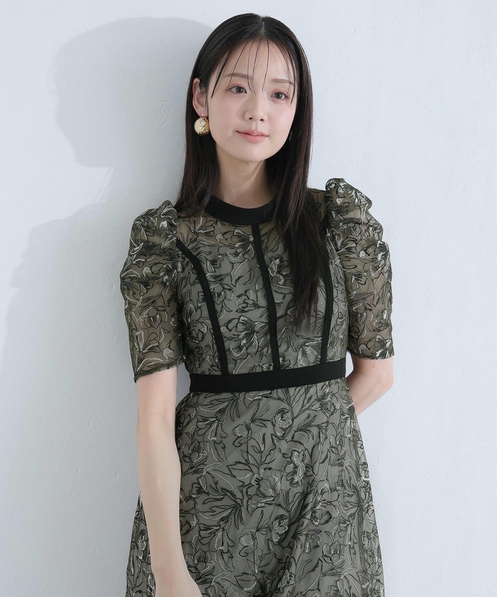 繊細な刺繍レースを贅沢に使用した、気品漂うパーティードレス。