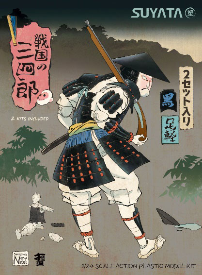 可動式インジェクションフィギュアの登場です。 接着剤不要のスナップキットです。 ・スナップキット ・関節が可動します ・デカール付属 ・太刀、脇差(どちらも鞘に収まっている/鞘から抜いてある状態のものが各1)、鉄砲、槍、酒樽、猪口が付属