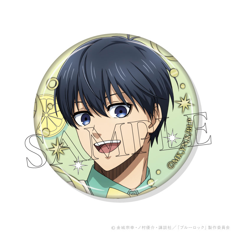TVアニメ『ブルーロック』より、「レモン」がテーマの描きおろし商品が登場。箔押しの枠が豪華な缶バッジです。