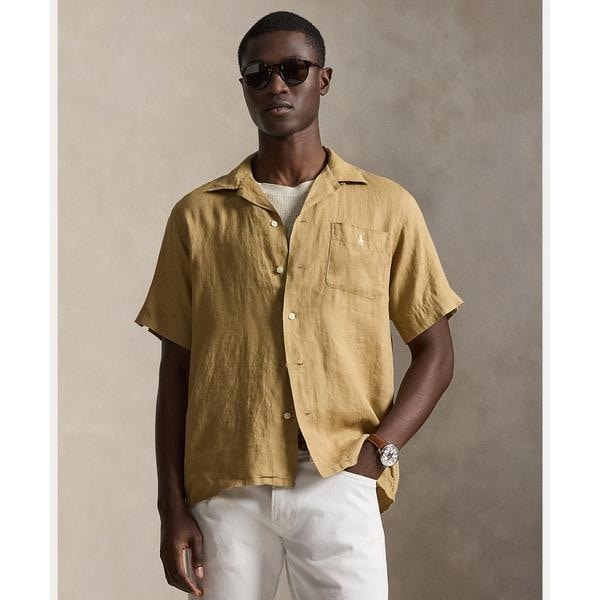 非常に薄手のリネンを使用し、ポケットにあしらったシグネチャーのポニー刺繍で仕上げたキャンプシャツ・クラシックフィット:胸、ウエスト、袖にかけてゆったりとしたカット、低いアームホール・キャンプカラー / ボタン付き前立て・半袖 / 左胸にパッチポケット・プリーツ入りのバックヨークで肩のなめらかな曲線を強調・ストレートな裾・ポケットにシグネチャーのポニー刺繍・モデル身長185cm、着用サイズM※商品の色味は、光のあたり具合など諸条件により色感が多少異なって見える場合がございますので予めご了承下さい。 【素材】・本体:麻 100% 装飾部分を除く【生産国】インドネシア