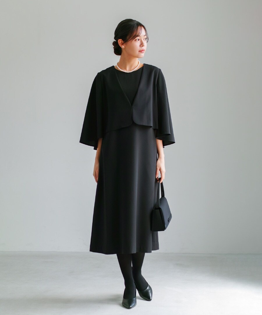 スーツ ワンピース ジャケット ケープ 3点セット セットアップ レディース 黒