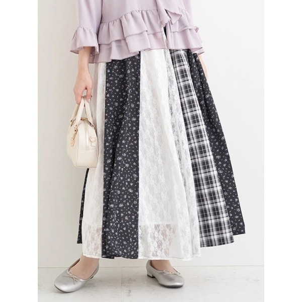 様々な柄や素材をMIXしたデザインが着映えする主役級スカート。